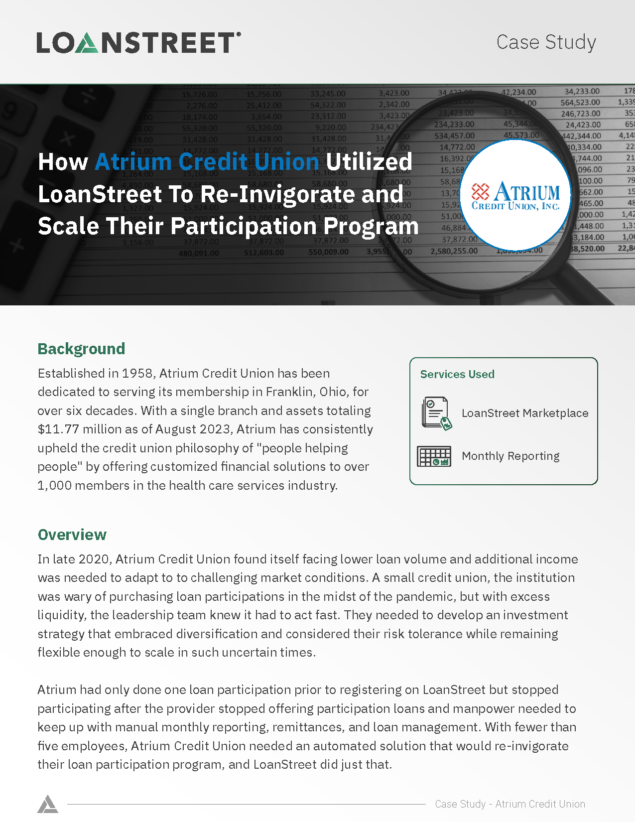 Atrium partnered with LoanStreet to develop a loan participation investment strategy that embraced diversification and considered their risk tolerance while remaining flexible enough to scale in such uncertain times.